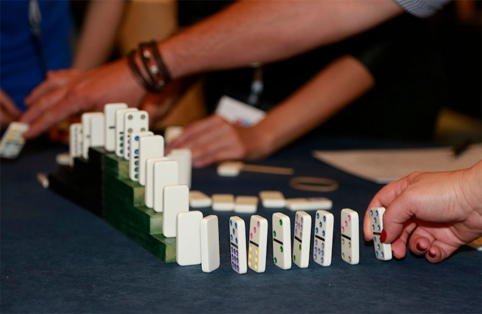 Once the domino rallies are complete, teams mingle and discuss each other’s design before the rallies are set in motion. The winning team will have the fastest working domino rally that satisfies all of the predetermined criteria. Plus, there is always an opportunity to receive an award for the most creative design.