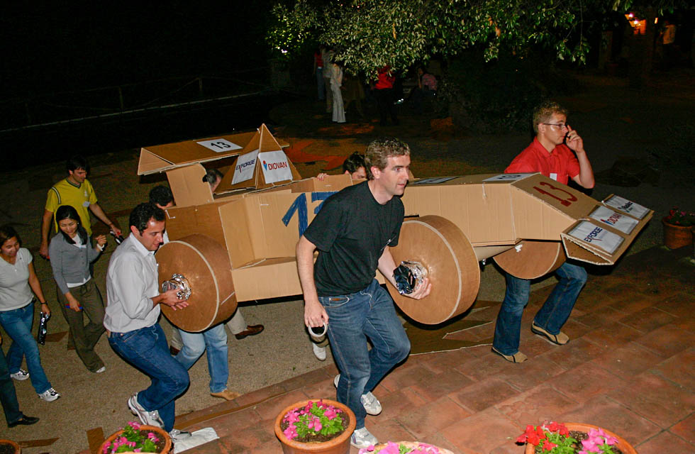 Teamwork, resourcefulness, and strong communication skills are required to turn the given materials into a winning Formula One car. A good understanding of the end goal, plus forming sub-teams to keep the whole team working effectively, is the only way to successfully complete this task. Not to mention the creativity and innovative thinking required to decorate and brand the car.