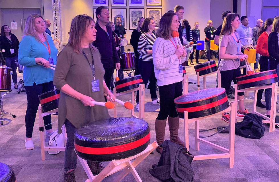 Hosted by a professional percussionist, this fun-filled event will see your team starting in small groups to learn the basics of samba beats and breaks. They begin with a variety of rhythm-based warm-up exercises before moving on to real samba instruments.