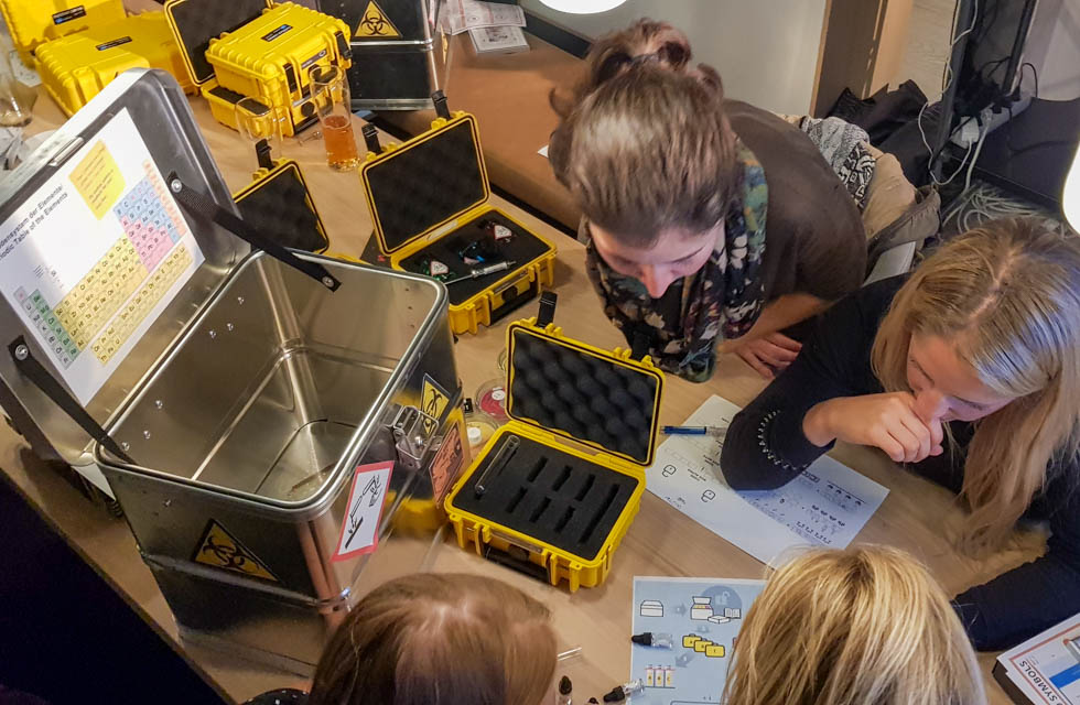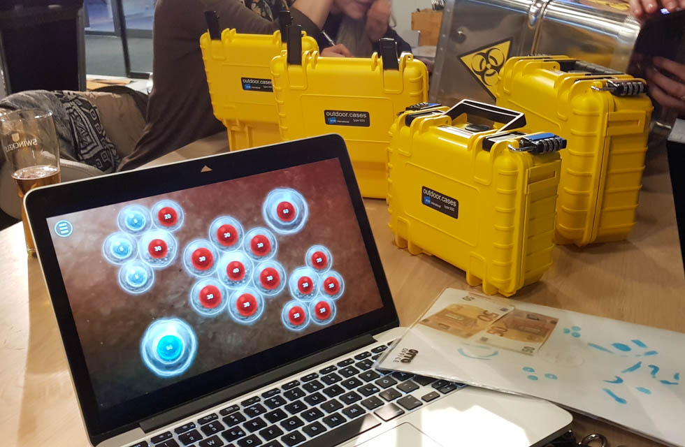 Teams are challenged to recover the vaccine and save the world. In this quest, they must open the boxes, decrypt the codes and bring the right DNA samples to an analyser. Can they discover the vaccine before it’s too late?