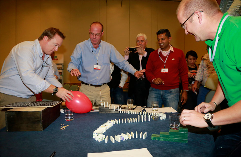 Once the domino rallies are complete, teams mingle and discuss each other’s design before the rallies are set in motion. The winning team will have the fastest working domino rally that satisfies all of the predetermined criteria. Plus, there is always an opportunity to receive an award for the most creative design.