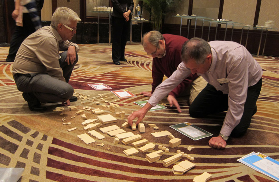 We provide teams with a selection of wooden parts in various sizes and shapes. Their challenge is to combine the components to produce a range of high-quality children’s toys. Three-dimensional blueprints guide them through the process and detail a whole range of toy designs.