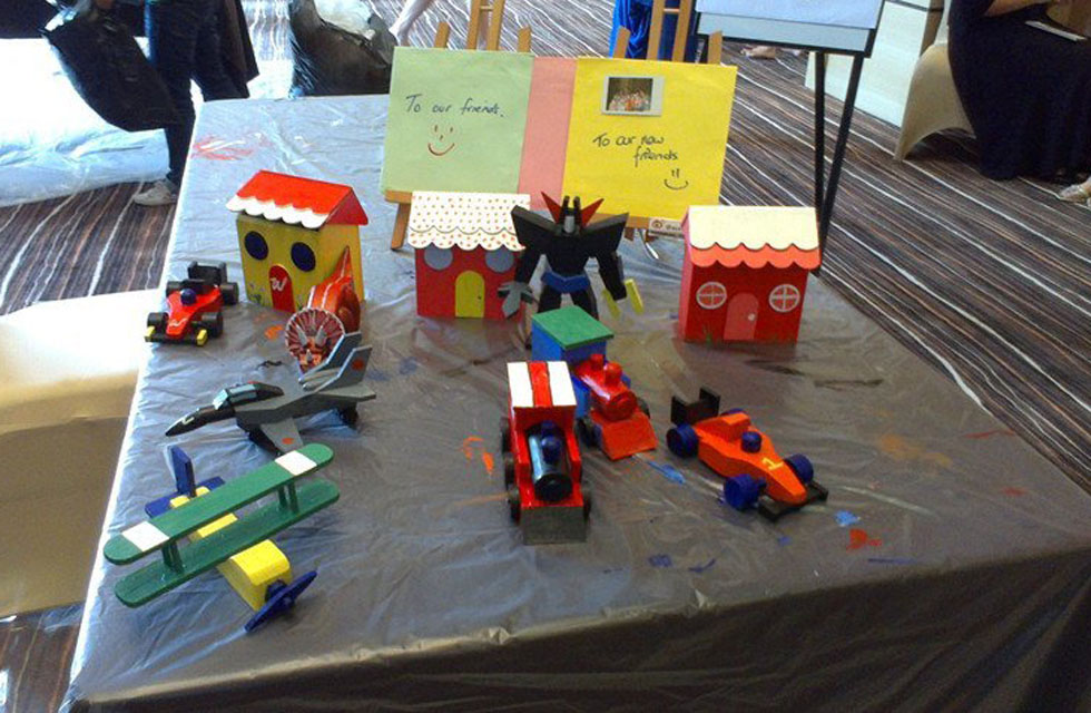 Once the quality is approved, the toys are then creatively decorated. Teams then design innovative educational games using the toys. An informal finale allows each team to take to the stage and show off their game and creations.