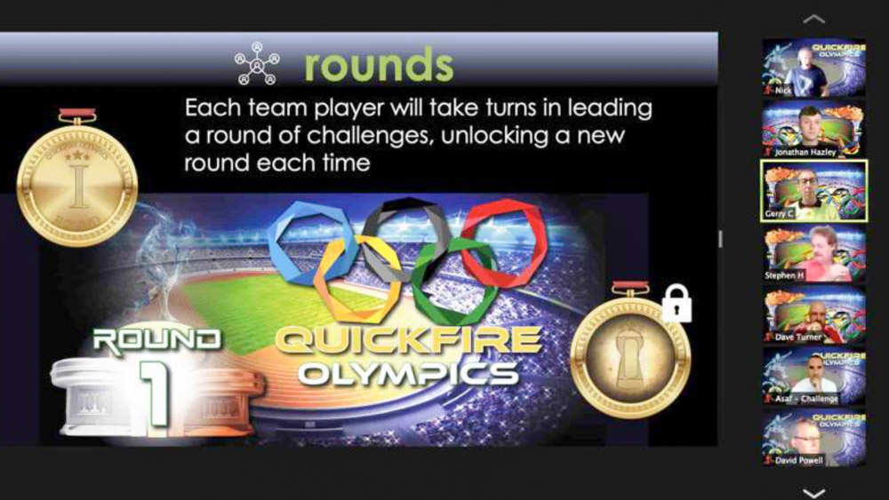In Quickfire Olympics Online, teams start by nominating their team leader for the first round. Then, we provide a mix of mental, creative, multiple-choice, and photo challenges - each with three difficulty levels and a corresponding level of reward. But, first, the team leader must get everyone on board with their strategy.