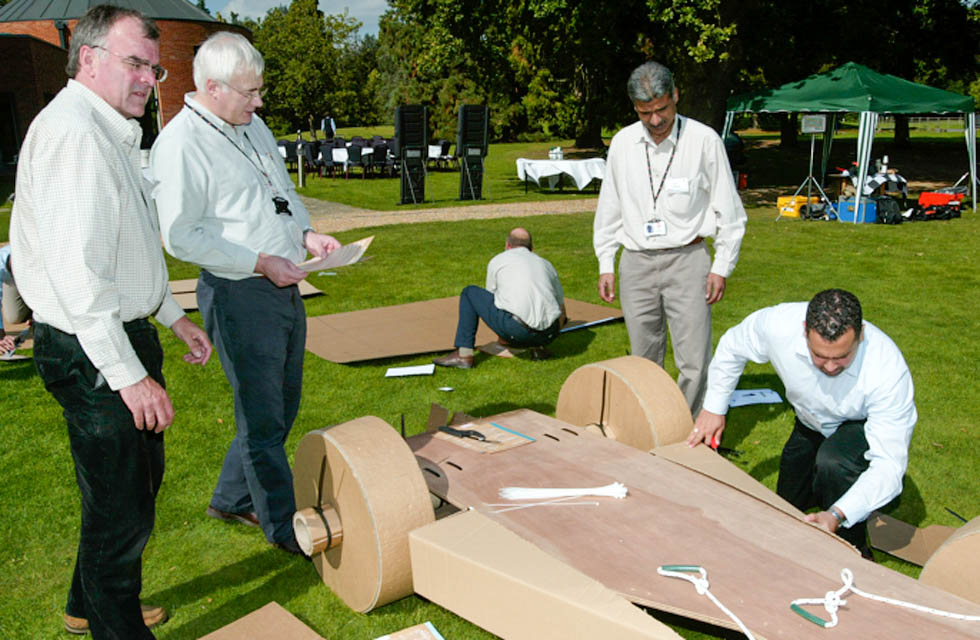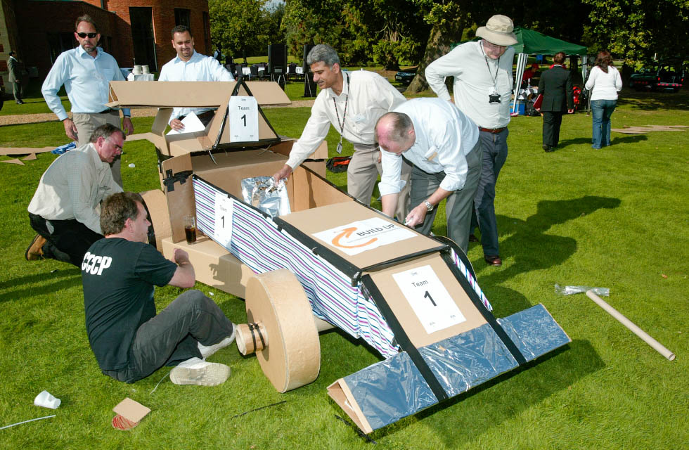Teamwork, resourcefulness, and strong communication skills are required to turn the given materials into a winning Formula One car. A good understanding of the end goal, plus forming sub-teams to keep the whole team working effectively, is the only way to successfully complete this task. Not to mention the creativity and innovative thinking required to decorate and brand the car.