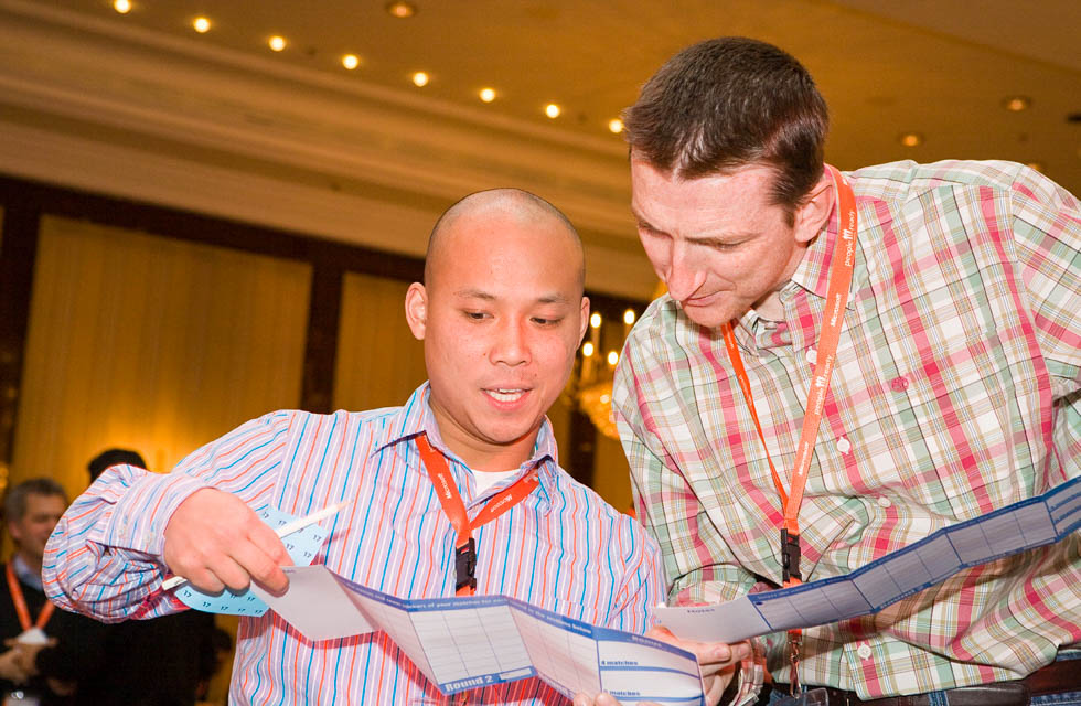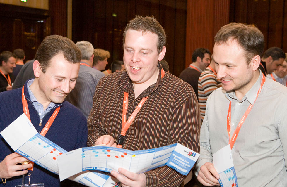 At set intervals, participants return to their teams to tally their scores and receive details of their next goal. Participants search out further connections, working the room until the final whistle. Finally, the points are totalled, and the winners are declared.