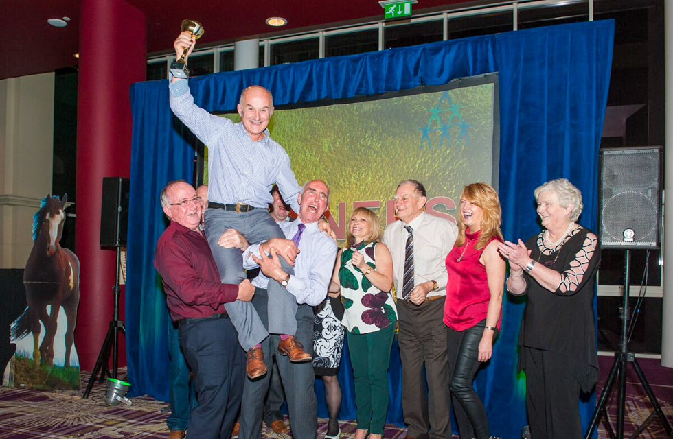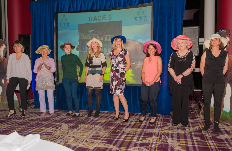 Each table plays as a team with an initial budget, which they gamble on the various races throughout the evening, visiting the ‘bookies’ to place their bets on the audio-visual set races.