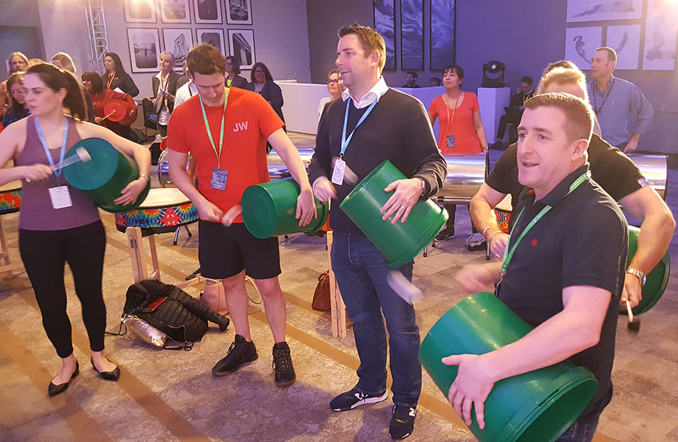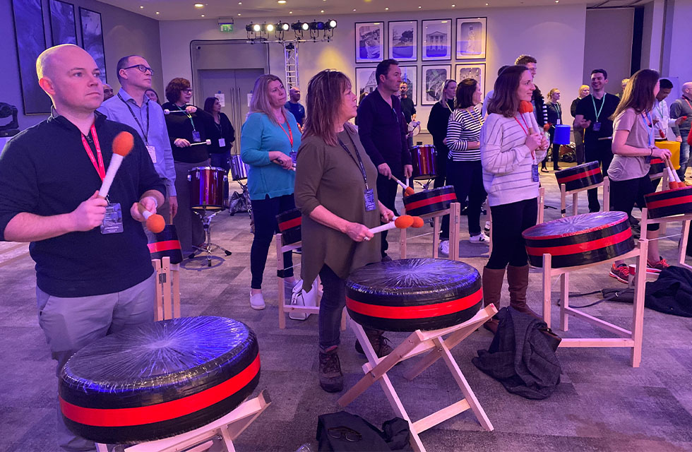 Hosted by a professional percussionist, this fun-filled event will see your team starting in small groups to learn the basics of samba beats and breaks. They begin with a variety of rhythm-based warm-up exercises before moving on to real samba instruments.