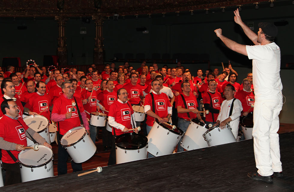 As confidence and abilities grow, the groups are brought together in preparation for a grand finale of epic proportions, where your team will perform as a samba band ensemble.
