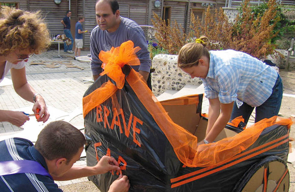 Given detailed plans and a flat-pack kit of materials, teams race against time to construct a life-size Roman chariot. Once complete, they decorate and brand their construction while formulating their winning race strategy.